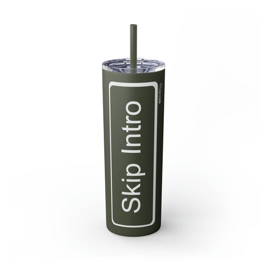 Skip Intro Button - Skinny Tumbler with Straw, 20oz
